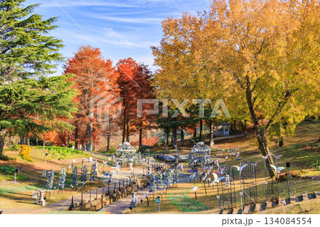 伊豆市 修善寺虹の郷のカナダ村へ続く園路と紅葉