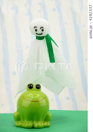 てるてる坊主とカエルの置物