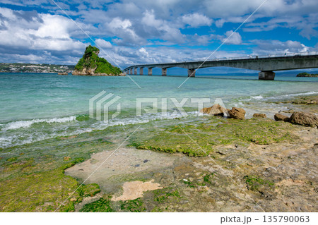 沖縄県名護市済井出 古宇利大橋から観たカエル島と古宇利ブルーの海
