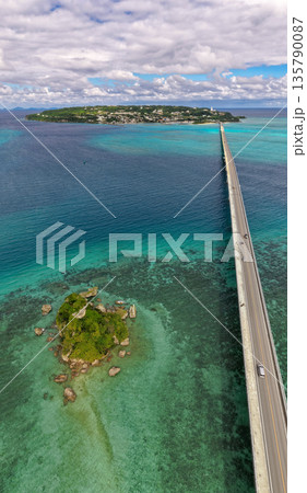 沖縄県本部半島の古宇利大橋とカエル島の空撮