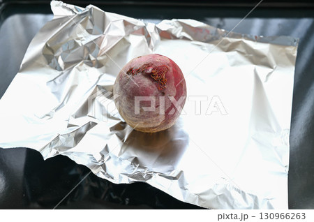 アルミ箔に包んだビーツ