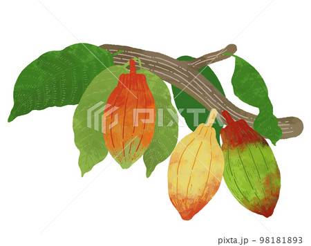 水彩タッチの木に実るカカオ豆のイラスト素材