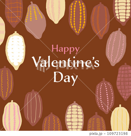 カカオ豆で構成されたバレンタインの手描きフレームA 文字あり