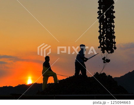 海のミルクと呼ばれる牡蠣の水揚げ状況写真