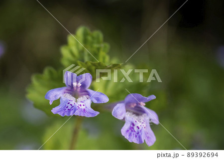 玉ボケを背景にカキドオシをクローズアップ/4月