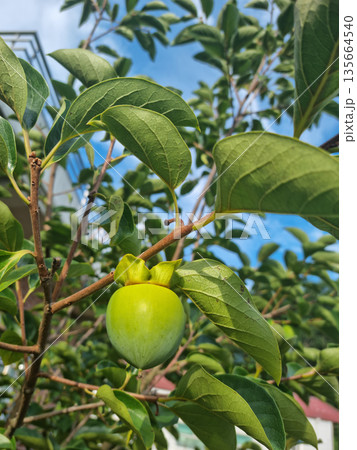 秋に向けて成長する柿の木