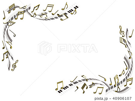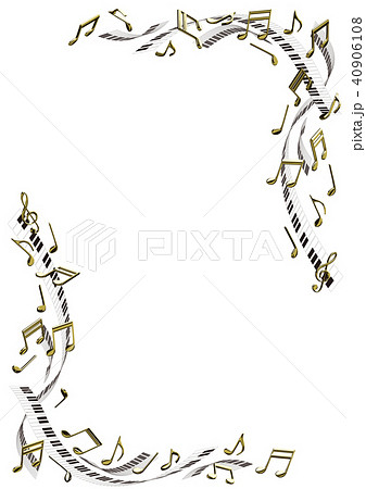 ベクター イラスト ピアノイメージ 金の音符 フレーム 鍵盤 A3