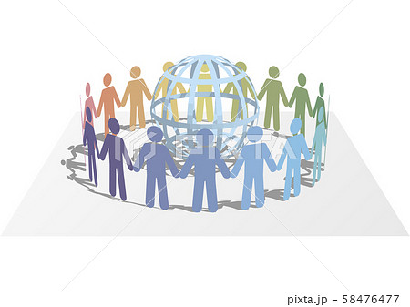 ベクター イラスト デザイン ペーパークラフト 背景透明 地球を囲む人の輪 カラー