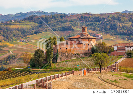 Autumnal vineyards and old castle in Italy.
