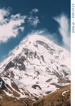 Georgia. Peak Of Mount Kazbek Covered With Snow