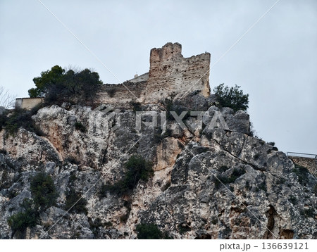 Medieval Stone Remnants On Cliff Edges, Ruined Castle Perched High Over Dramatic Landscape Features