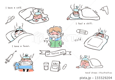 風邪で体調悪い人のイラストセット
