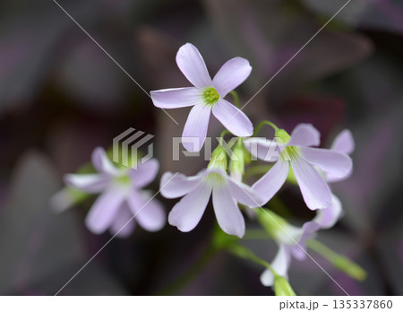 ムラサキカタバミの満開の花の風景
