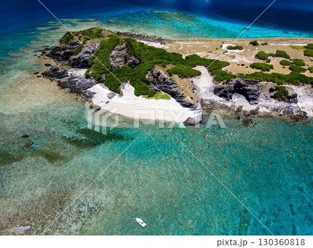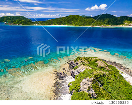 嘉比島のドローン撮影。乗船するカタマランヨットや座間味島、安慶名敷島。沖縄県島尻郡慶良間諸島座間味島