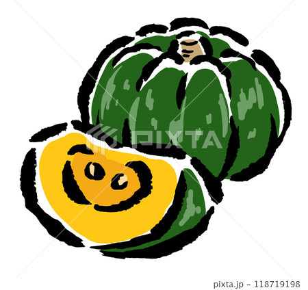 かぼちゃ 全体と切ったもの 筆タッチイラスト