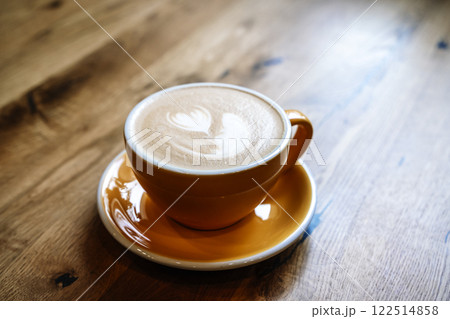 Coffee latte art. Morning Cup of cappuccino in a cafe for breakfast