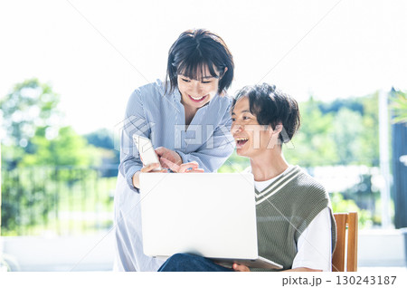 パソコンとスマホで検索をする夫婦