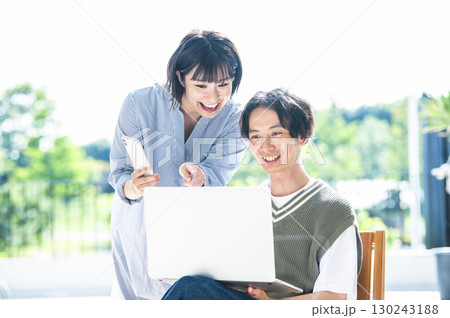 パソコンを使うカジュアルな若い男女