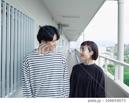 スマホで通話する若いカップルのシンプルなベクターイラストセット素材
