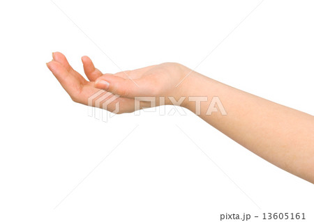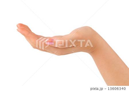 Open woman hand on white background