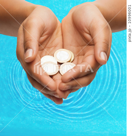 womans cupped hands showing euro coins