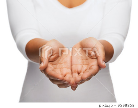 front view of cupped palm hand gesture