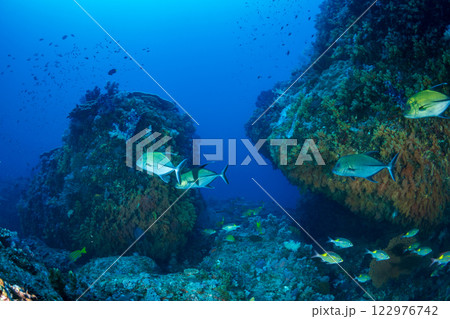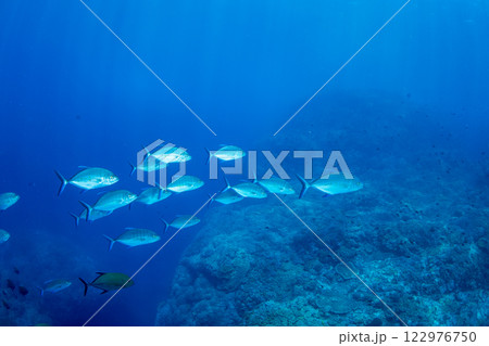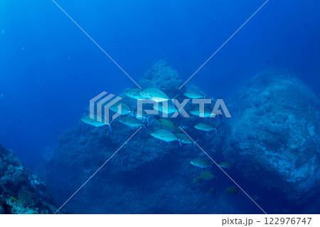 小笠原,嫁島,マグロ穴の中を泳ぐカッポレの群れ
