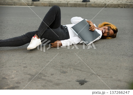 young student after class, happy.