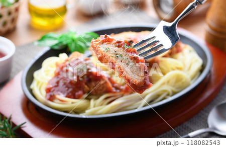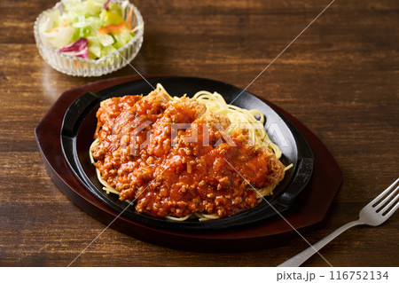 鉄板ナポリタンとカツレツ|洋食ランチのあつあつイメージ トンカツパスタ ( スパカツ )