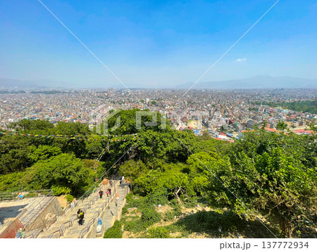 ネパール・カトマンズ スワヤンブナート寺院より眺めるカトマンズ市街