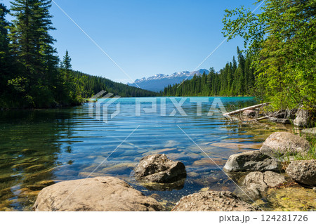 Valley of the Five Lakes. Enchanting Turquoise Lake in Jasper National Park, Alberta, Canada.