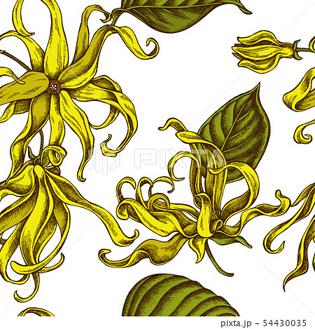 Seamless pattern with hand drawn colored ylang-ylang