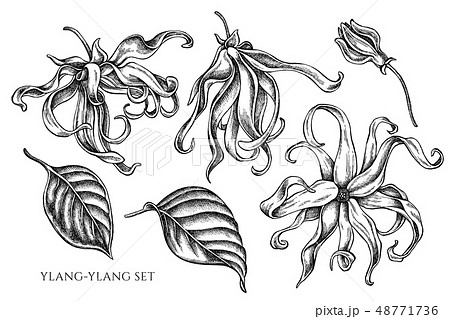 Vector collection of hand drawn black and white ylang-ylang