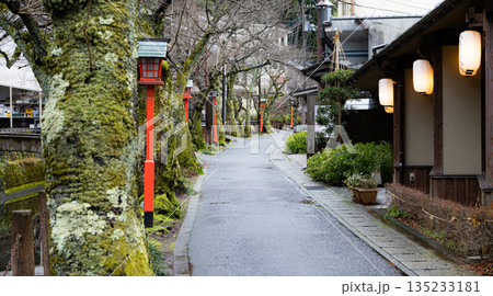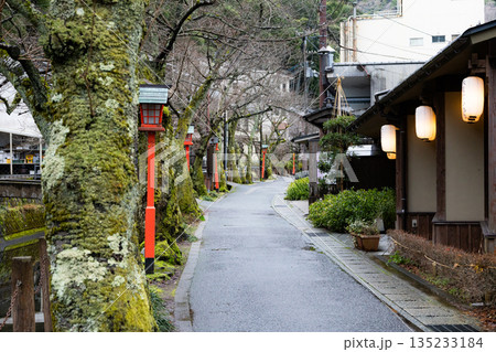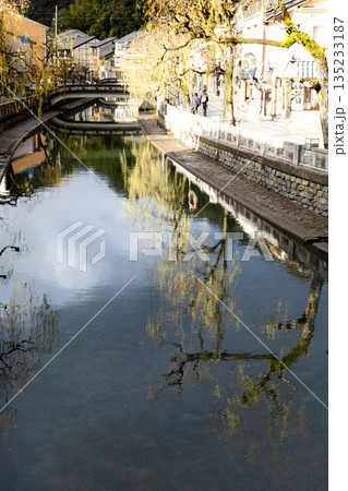 冬の兵庫県豊岡市にある歴史ある温泉地城崎温泉の風景