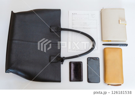 転職 面接のイメージ 履歴書と女性のバッグと中身