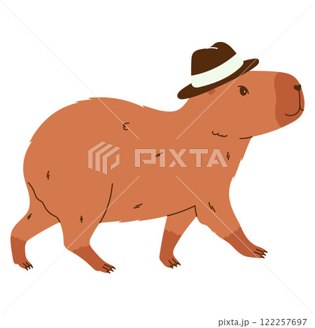 Cute capybara character. Funny rodent in hat. Hand drawn vector illustration.