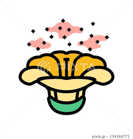 flower releasing pollen particles color icon vector illustration