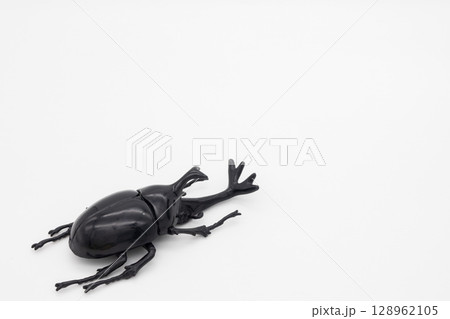 白背景にカブトムシの人形