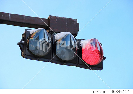 カプセル型の着雪対策信号機。北海道札幌市中央区内。