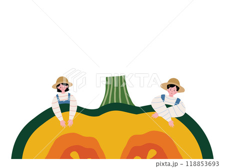 ナチュラルなタッチのかぼちゃのイラスト/横レイアウト