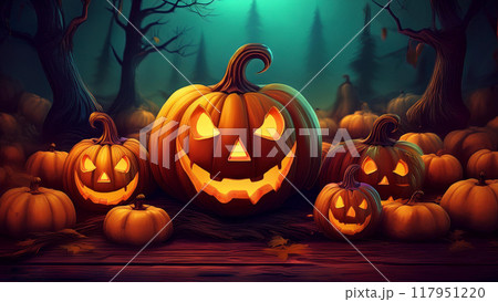 ハロウィンのかぼちゃと不気味なハロウィン背景
