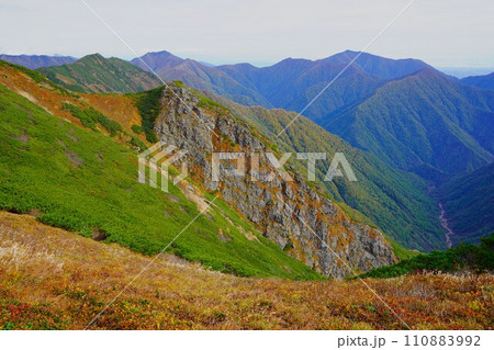 ピラミッド峰山頂からのシカシナイ山への稜線