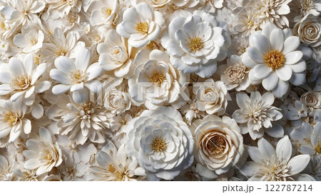 stunning close-up of delicate white flowers, including camellias and other soft petals, arranged beautifully to create a soothing, elegant floral display