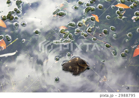 カルガモの赤ちゃん達 池の中で