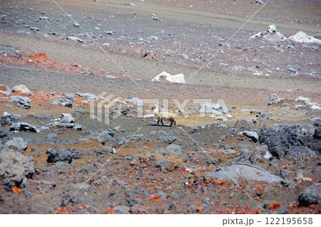 富士山の山肌を歩くカモシカ