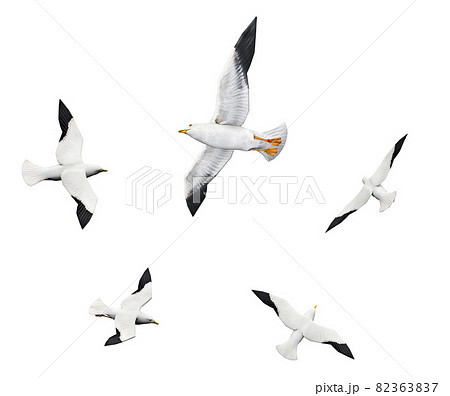 Flock of seagulls isolated on white background
