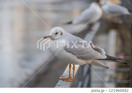 手すりの上に並ぶユリカモメ 城北公園 大阪市