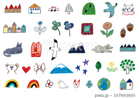 可愛い手描きのイラストセット