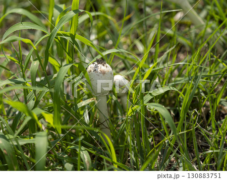公園に生えたオオシロカラカサタケのアップ