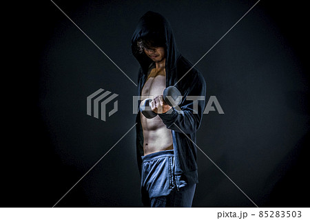 筋肉を鍛える男性(ダンベル)
